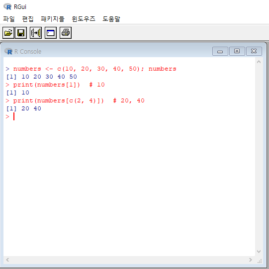 - R에서 벡터의 인덱스는 1부터 시작한다.