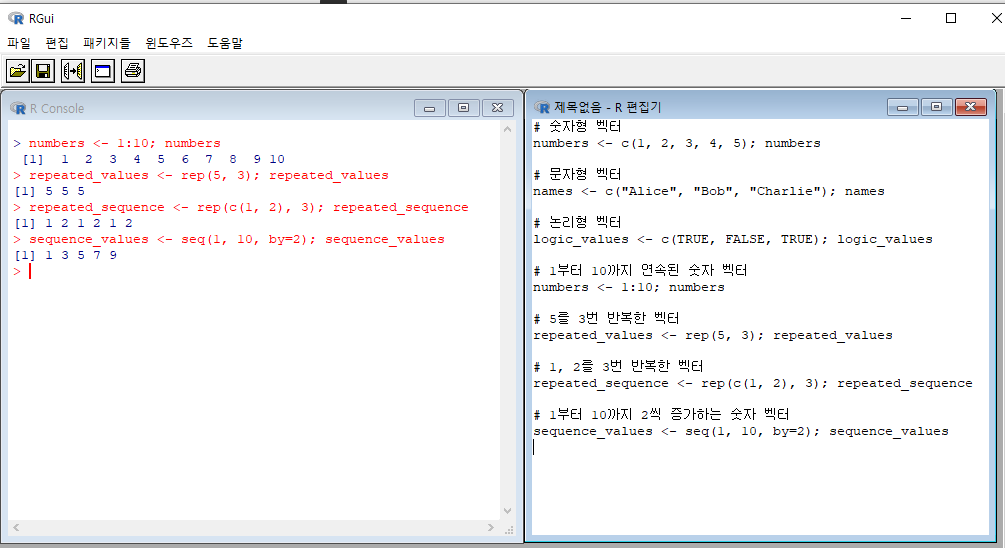 - 다양한 함수와 결합: R에는 벡터를 다룰 수 있는 다양한 함수들이 내장되어 있어 데이터 분석 시 유용하게 사용됨.