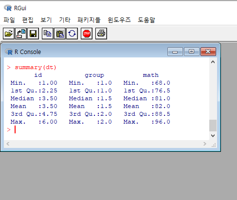 데이터의 기본적인 통계 요약을 빠르게 확인하고 싶다면 summary() 함수를 사용한다.
