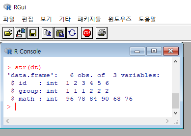 - str(): 데이터의 구조를 출력하여 각 변수의 데이터 유형과 값의 개수를 확인할 수 있다.