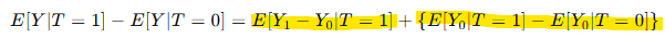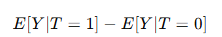 처치를 받은 그룹(T=1)과 받지 않은 그룹(T=0)의 평균 차이다.