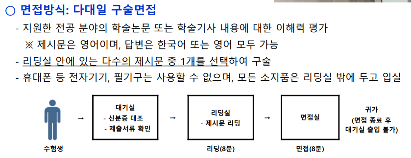 - 모두 대학원 입시에 나올법한 질문들 이었다고 생각합니다: 자기 소개/ 진학 동기/ 목표/ 관심 연구분야&랩