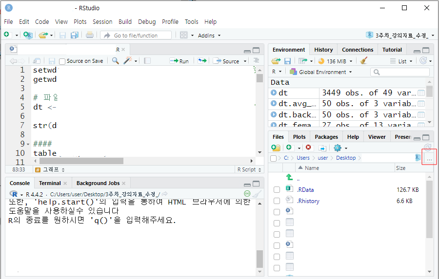 - RStudio의 우측 하단 [Files] 탭 클릭