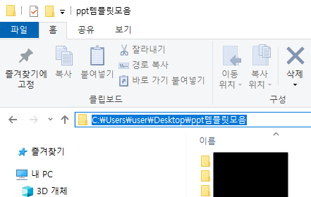 파일 탐색기에서 작업 폴더를 열어 상단 주소창을 클릭하면 파일 경로가 텍스트로 변한다.